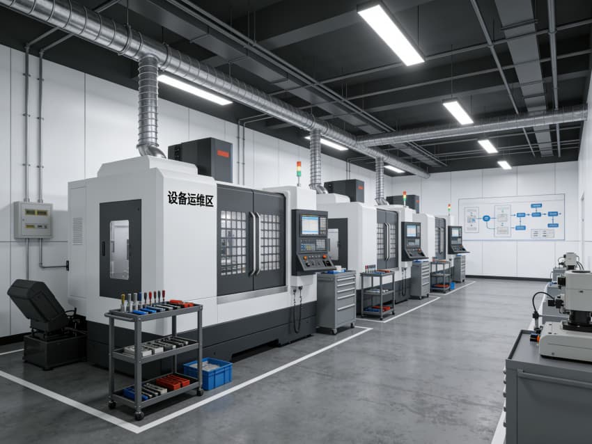配套的物料倉儲區采用重型貨架規范存放各類工裝夾具與半成品,實現物料的快速調取與流轉;“設備運維區” 配備專業維保團隊與工具車,定期對 CNC 設備進行校準與養護,確保設備長期處于高精度運行狀態。
