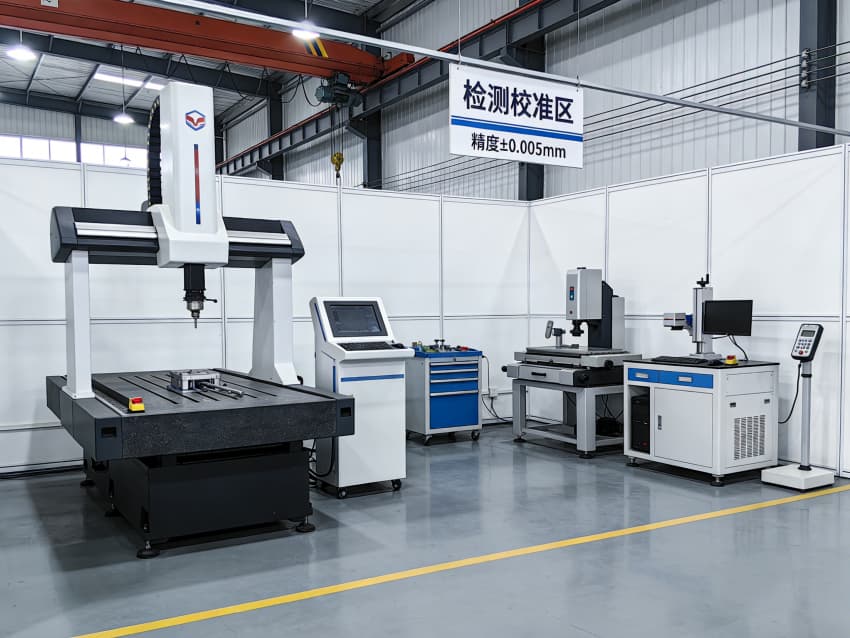 在 “檢測校準區”,三坐標測量儀、影像儀等專業設備可實現 ±0.005mm 的檢測精度,從原材料入廠到成品出庫,全流程把控尺寸公差與形位精度;“精密安全加工區” 則通過自動化設備與標準化作業看板,將安全管控與生產效率深度結合,保障批量生產的穩定性。