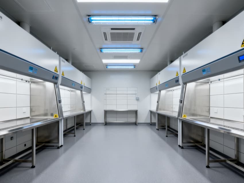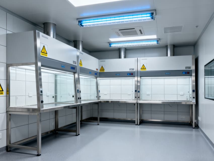 潔凈度執(zhí)行萬級標準(ISO8級),配置生物安全型空氣凈化系統(tǒng),確保每小時20次空氣置換與99.99%微粒過濾效率。