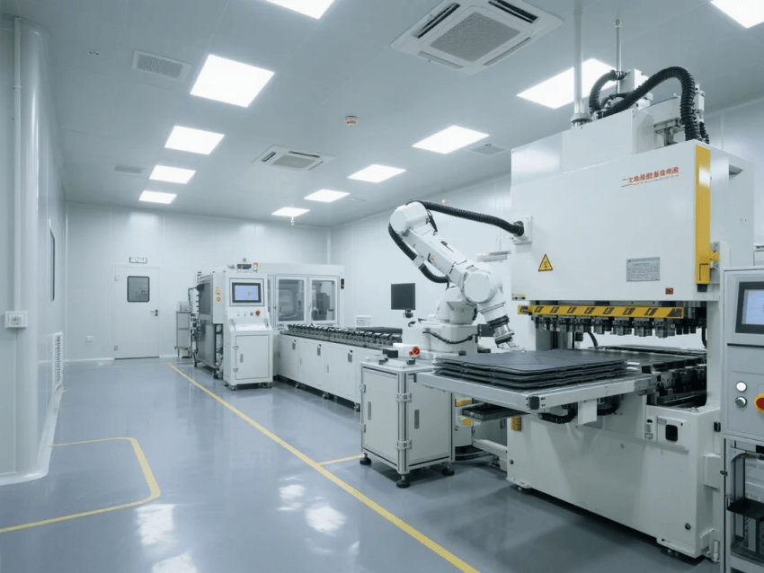 智能化配置:集成環(huán)境監(jiān)測與設(shè)備聯(lián)動系統(tǒng),白色彩鋼板墻面嵌裝LED智能看板,實時顯示生產(chǎn)數(shù)據(jù)與潔凈參數(shù)。機械臂工作站配備藍(lán)光定位系統(tǒng),與金屬灰地坪形成科技視覺呼應(yīng)。