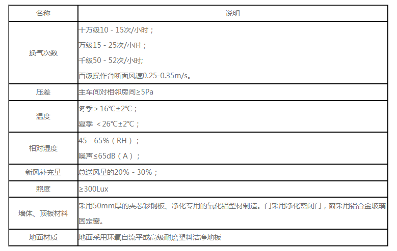 由于制程工藝特殊性,所要求的送、排風、送、排水管道多,且風量大,因此建議車間的層高為5-6m,其中車間的吊頂高度為3.0m