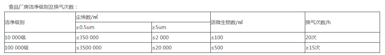 2、按照生產工藝和衛生、質量要求,劃分潔凈級別,具體級別及要求: