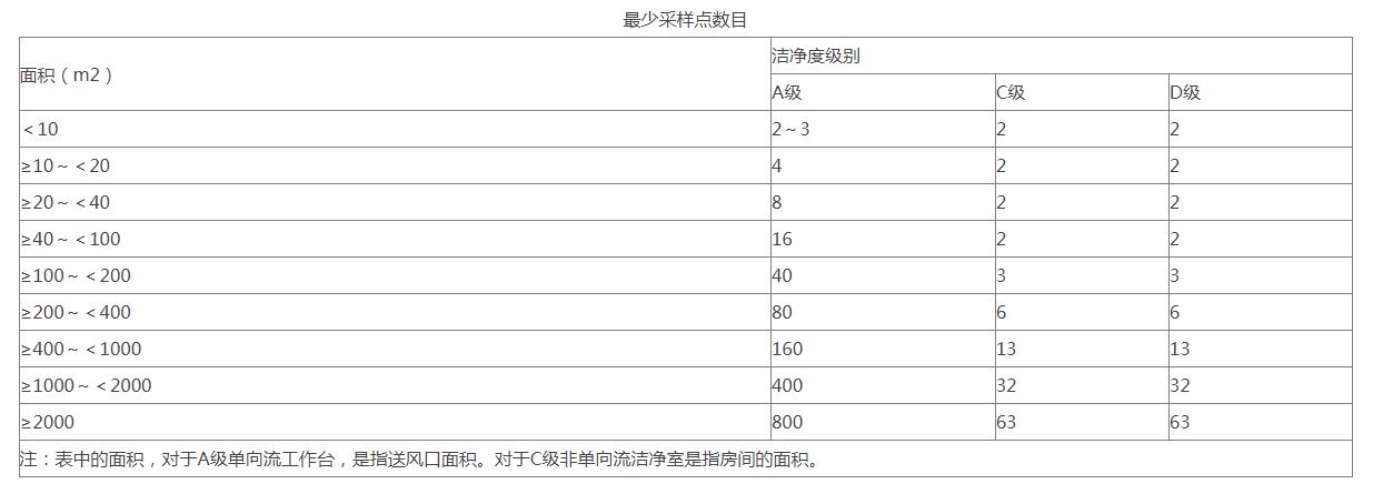 11、采樣點一般在離地面0.8m高度水平面上均勻布置,特殊情況下,可以就近選擇,但原則上要避開回風口。采樣點多于5點時,也可以在離地平0.8m~1.5m高度的區域內分層布置,但每層不少于5點。  采樣次數的限定對于任何小潔凈室或局部空氣凈化區域,采樣點的數目不得少于2個,總采樣次數不得少于5次。每個采樣點的采樣次數可以多于1次,且不同采樣點的采樣次數可以不同。  12、潔凈度靜態測試:在生產操作全部結束以后,全部操作人員撤出生產現場,經20分鐘的自凈后,進行空氣懸浮粒子的靜態檢測,并確定警戒限和糾偏限(分別暫定為法定標準的50%及80%)。制劑車間的潔凈級別為D級,在靜態情況下,靜態的標準為:  各潔凈室沉降菌測試目的是確認空調凈化系統的環境能夠達到要求,并確定沉降菌的警戒限度和糾偏限度(分別暫定為法定標準的50%及80%)。主要測試方法為《醫藥工業潔凈室(區)沉降菌的測試方法》(GB/T16294-2010);取樣部位各潔凈室房間。取樣器具為培養皿(Φ90mm×15mm);取樣步驟及方法在HVAC系統至少運行30分鐘,房間的溫濕度及相對壓差達到要求后,方可進行沉降菌測試。用培養皿(Φ90mm×15mm)和瓊脂培養基進行培養,在采樣點放置,打開平皿蓋,使培養基暴露時間可以少于4小時,將平皿蓋蓋上,然后在30~35℃條件下培養48小時后計數。(采樣點數目同懸浮粒子)  13、各潔凈室浮游菌測試目的是確認空調凈化系統的環境能夠達到要求,并確定浮游菌的警戒限和糾偏限(分別暫定為法定標準的50%及80%)。測試依據《醫藥工業潔凈室(區)浮游菌測試方法》(GB/T16293-2010);取樣部位各潔凈室房間。取樣器具為Φ90mm玻璃平皿。取樣步驟在HVAC系統至少運行30分鐘,房間的溫濕度及相對壓差達到要求后,方可進行浮游菌菌測試。用Φ90mm玻璃平皿和大豆酪蛋白瓊脂培養基(TSA)進行培養,在采樣點放置,打開平皿蓋,使培養基表面顯露30分鐘后,將平皿蓋蓋上,然后在30~35℃條件下培養48小時后計數。采樣點的位置及采樣點的數量可以同懸浮粒子測試要求。(采樣點數目同懸浮粒子)每個采樣點取樣一次。(每個采樣點一般只采樣一次)