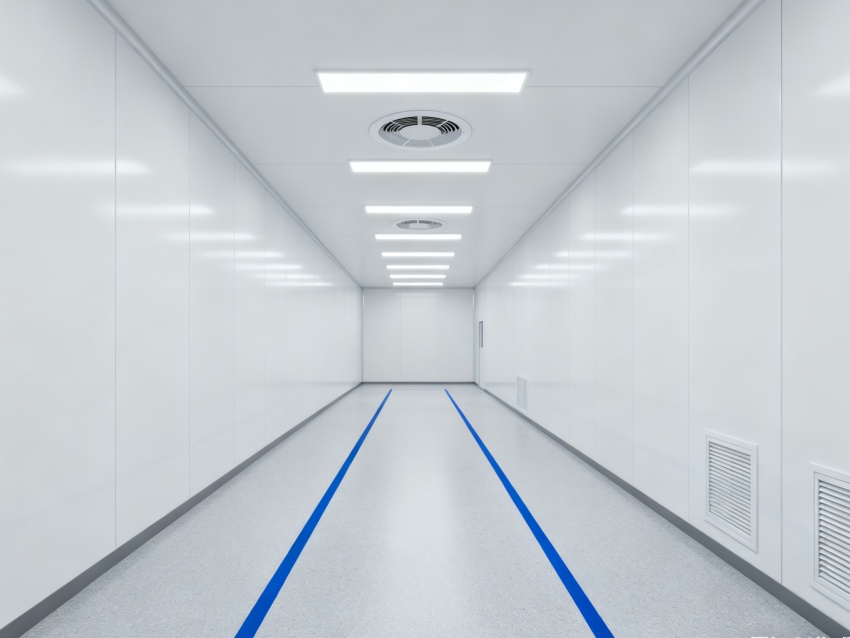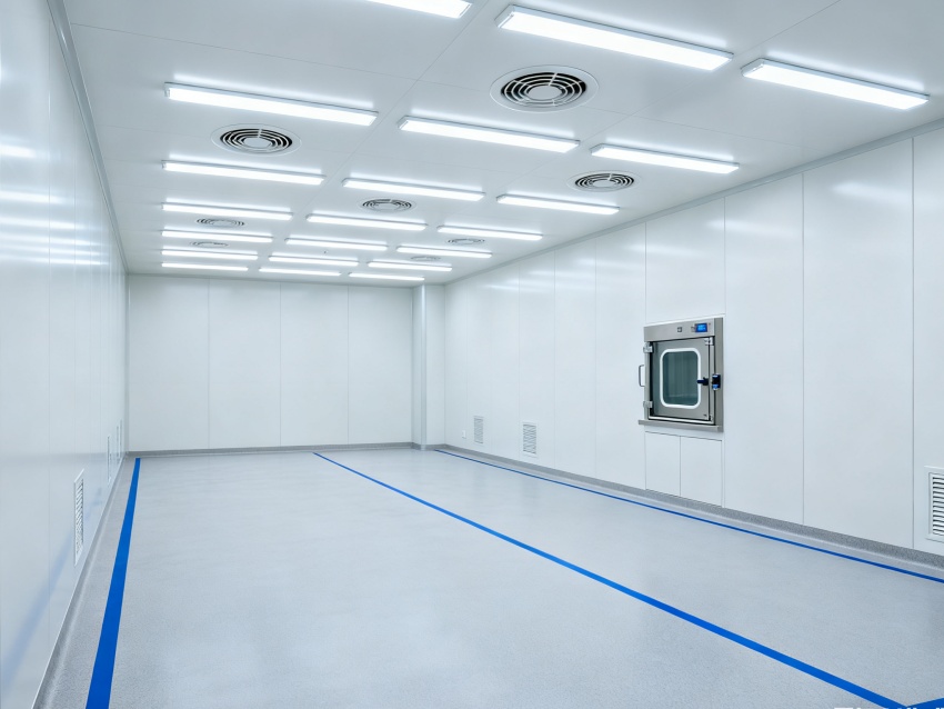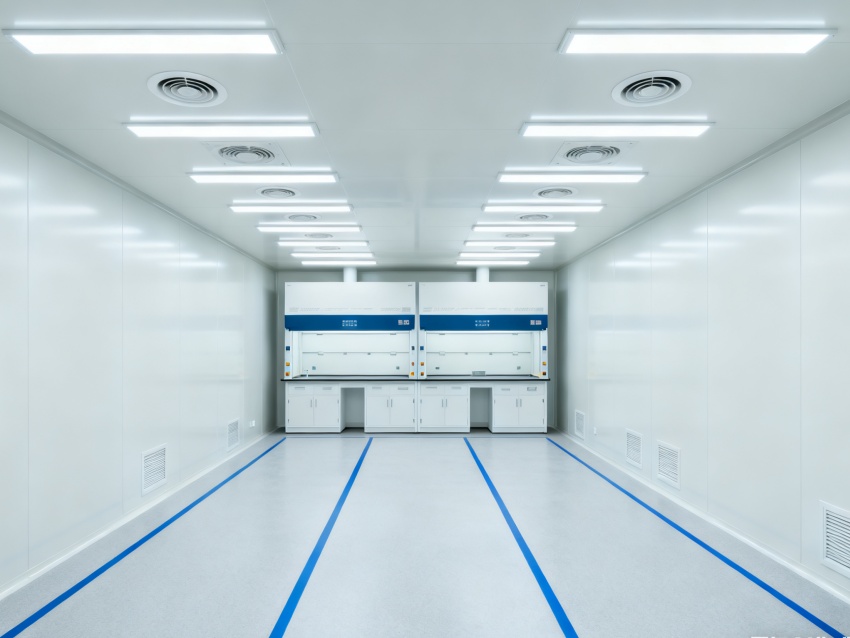 實驗室潔凈度嚴格遵循萬級標準(ISO8級),每立方米空氣中≥0.5μm微粒數(shù)≤352000個,采用初效-中效-高效三級空氣過濾系統(tǒng),配合垂直層流送風設(shè)計,實現(xiàn)每小時20-25次空氣置換。室內(nèi)墻面采用耐腐蝕潔凈彩鋼板,地面為PVC無菌卷材,所有接縫做密封處理;溫度控制在22±2℃、相對濕度50±5%RH,部分區(qū)域維持5-8Pa負壓,有效防止交叉污染,符合生物安全實驗室建設(shè)規(guī)范。
