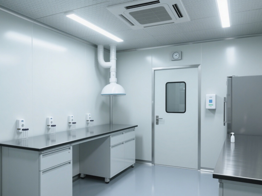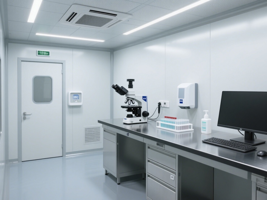 環境控制系統是關鍵,空調通風系統集成高效空氣過濾器(HEPA),能精準維持恒溫恒濕與千級空氣潔凈度;門、窗采用密封設計,配合洗手、消毒設施的全域布置,從細節處阻斷污染路徑。整體裝修通過材質、布局、設備與環境系統的協同,為微生物檢測打造了符合千級標準的無菌、可控環境,確保檢測結果的準確性與可靠性。