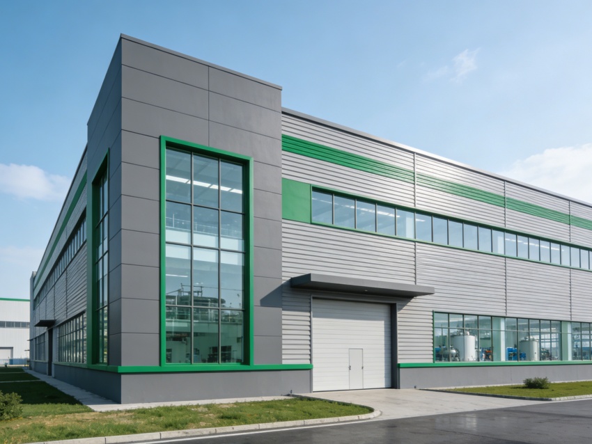 本次呈現的生物制藥生產車間,整體風格嚴謹統一,精準適配生物制藥無菌、潔凈的核心生產需求。廠房外立面采用淺灰色工業板材搭配高密封玻璃幕墻,既彰顯生物制藥場所的專業沉穩,又保障建筑的保溫隔音與采光性能,入口區域預留風淋室及無菌緩沖間位置,從源頭把控潔凈門檻。