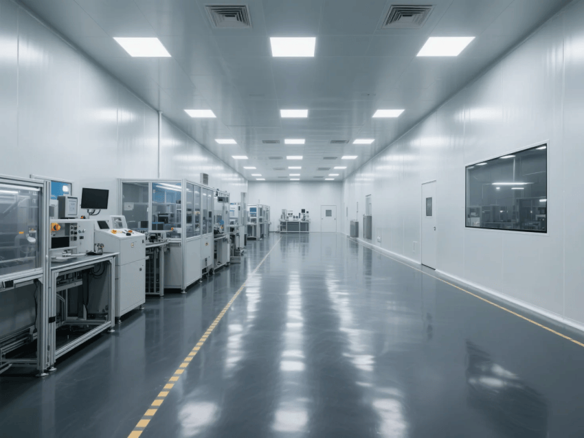 裝修材料的選擇,猶如為無塵車間奠定基石。地面材料,需具備防靜電、耐磨、防滑與耐腐蝕等特性,環氧地坪、PVC地坪或是抗靜電瓷磚皆是不錯之選。這些材料不僅易于清潔,能有效維持車間的潔凈度,還能承受頻繁的人員走動與設備移動。墻面材料應選擇抗菌、易清潔的類型,如不銹鋼板、彩鋼板、凈化板或PVC板,避免使用易產生粉塵或難以清潔的材料,防止細菌滋生與灰塵積聚。頂棚材料則要兼顧防火、防水與保溫性能,鋁合金板或石膏板較為適宜,且要保證其易于維護和清潔。