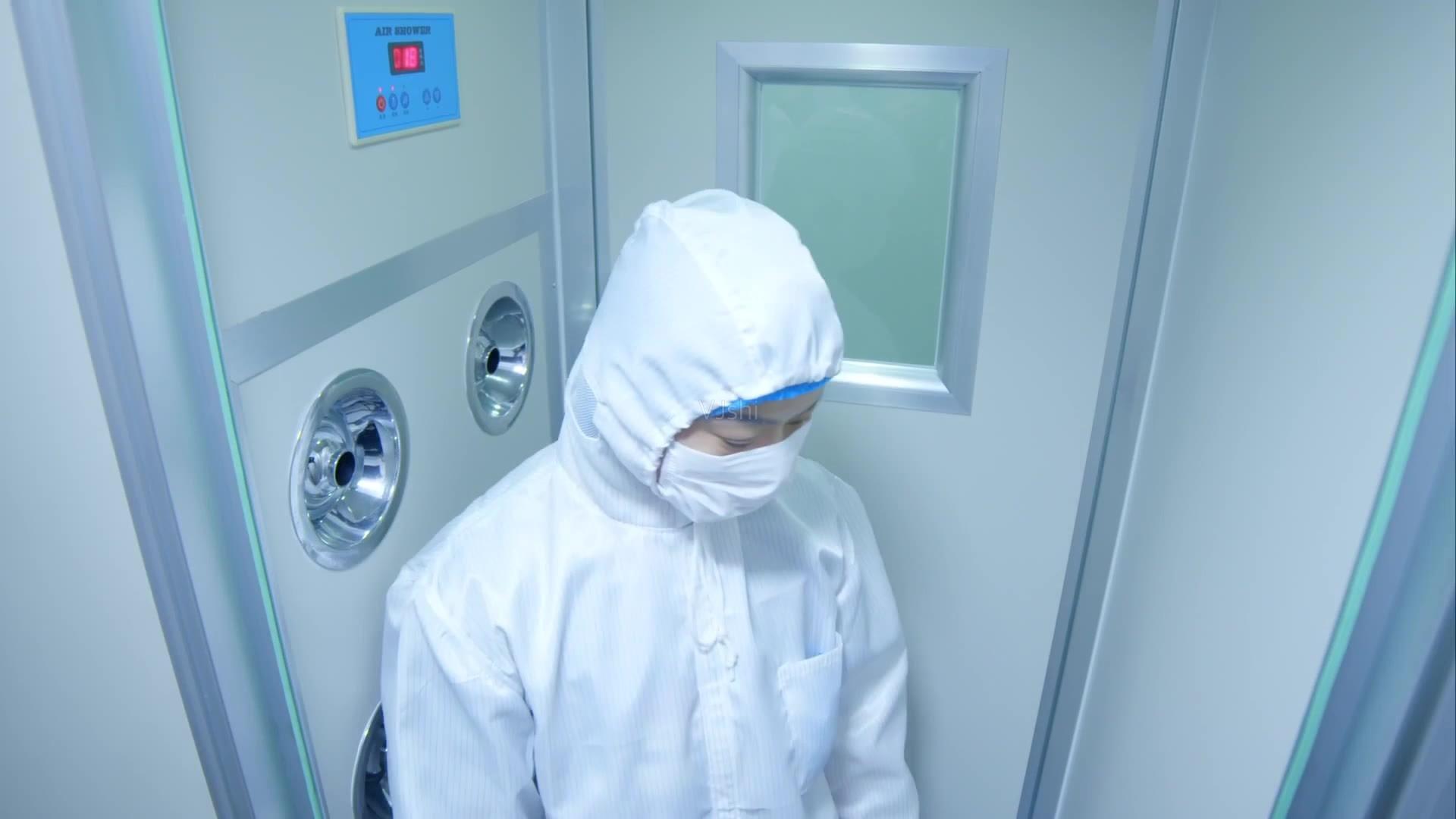 燈具均采用潔凈型,嵌入式并達到光通量及IP55的要求。當然有特殊要求的防爆燈具可采用明裝式,但必須是易清潔,不積塵的型式。高效箱為不銹鋼304,散流器為不銹鋼304或鋼制噴涂。潔凈室地面采用環氧自流坪(生產區,潔凈樓梯),環氧彩砂(包裝區)及PVC或乙烯基卷材(實驗室)。也可根據實際情況調整。地面與墻面的導角應與地面采用相同,光滑,同質的材料圓滑過渡。且該導角的曲率半徑應為不小于30 mm的圓角。所有經過墻體、吊頂、地面的穿管均需密封,即使用304不銹鋼套管且硅膠密封。硅膠應采用有FDA證明的型號。普通潔凈鋼制門的門框門頁均為鋼制PE噴涂。自動門的門框門頁可為鋼制PE噴涂或鋁合金陽極氧化,當然潔凈快卷門的卷簾是PVC材料。窗采用鋁框及鋼化玻璃。潔凈室家具采用不銹鋼304。潔凈電梯轎廂內表面采用不銹鋼304。