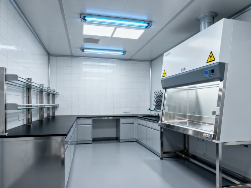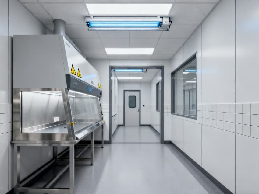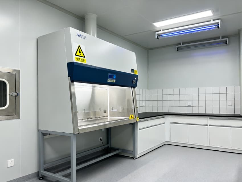 圍護結(jié)構(gòu)選用304不銹鋼抗菌墻板與無縫PVC地面,轉(zhuǎn)角圓弧處理無衛(wèi)生死角,配套紫外消毒系統(tǒng)與恒溫恒濕控制(22±1℃,50±5%RH),全面滿足微生物研究的無菌環(huán)境要求。